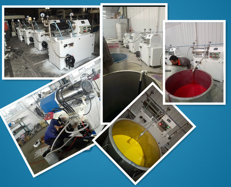 臥式密閉砂磨機是一種采用濕法研磨分散、筒體水平安裝、連續(xù)密閉生產(chǎn)的化工設備;型氣動雙隔膜泵(或齒輪泵)將經(jīng)過預分散、潤濕處理的固液相混合物料輸入筒體內,物料和筒體內的研磨介質一起被高速旋轉的分散器組所攪動,使物料中的固體顆粒和研磨介質間產(chǎn)生強烈的碰撞、剪切,在短時間內達到物料顆粒的磨細和分散聚集體的目的。是生產(chǎn)油漆、油墨、染料等產(chǎn)品的常用設備