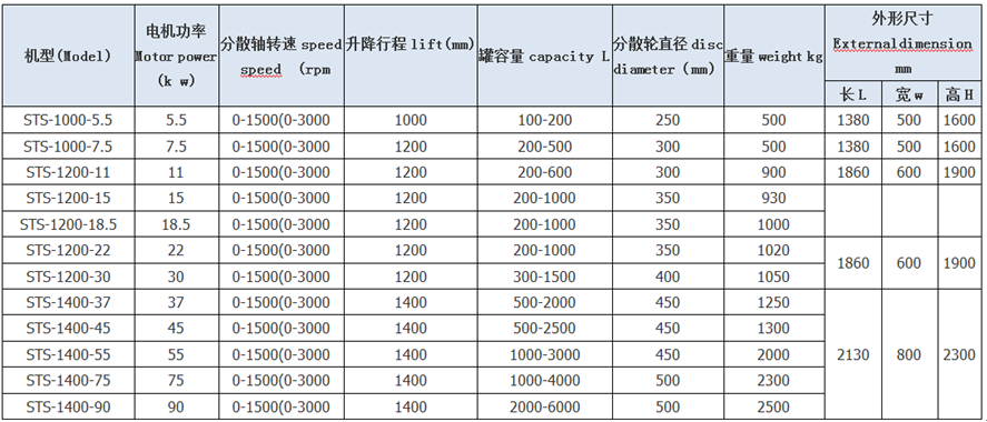 分散機(jī)采用無級調(diào)速,有電磁調(diào)速、變頻調(diào)速(如用于水性涂料)及防爆變頻調(diào)速(如用于油性涂料)等多種形式。無級調(diào)速功能能充分滿足各工藝過程中不同的工藝要求,可以根據(jù)不同的工藝階段選擇不同的轉(zhuǎn)速。升降形式:有液壓升降;氣動升降。本分散機(jī)對粉體不加助劑、對晶包完整性要求較高的物料不適用。